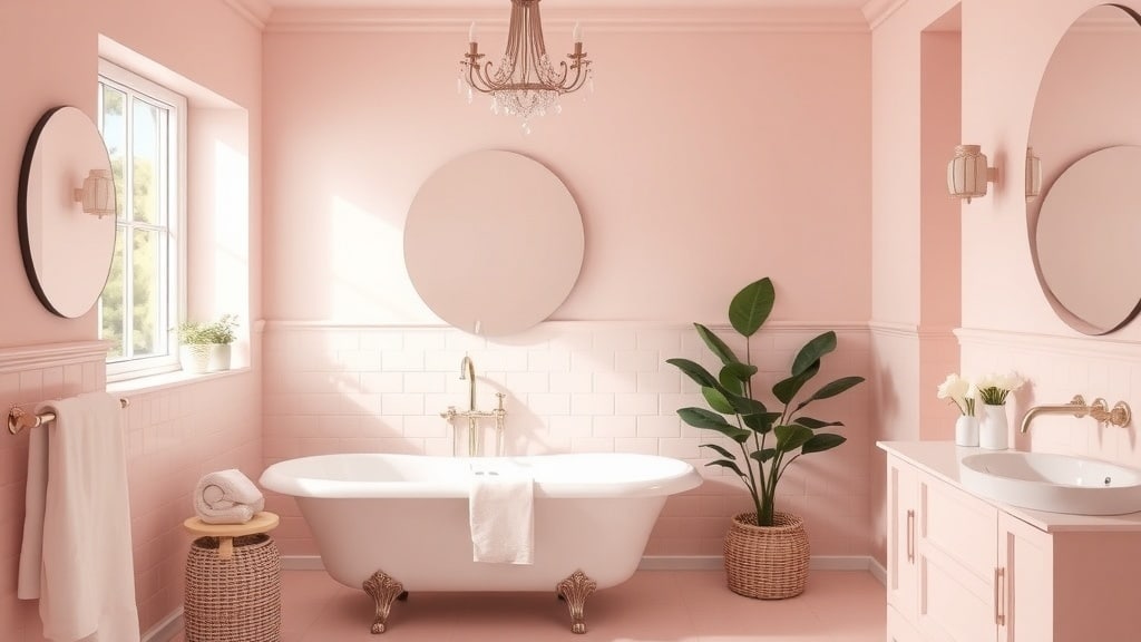 A blush pink accent wall can transform your bathroom into a serene retreat. This soft hue adds warmth and a touch of elegance, making it a perfect choice for a space where you unwind.