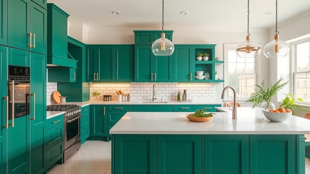 Choosing bold colors like emerald green can be a game changer in kitchen design. It allows for creativity while still maintaining a sophisticated vibe. Pairing these cabinets with neutral tones elsewhere in the kitchen can help balance the boldness.