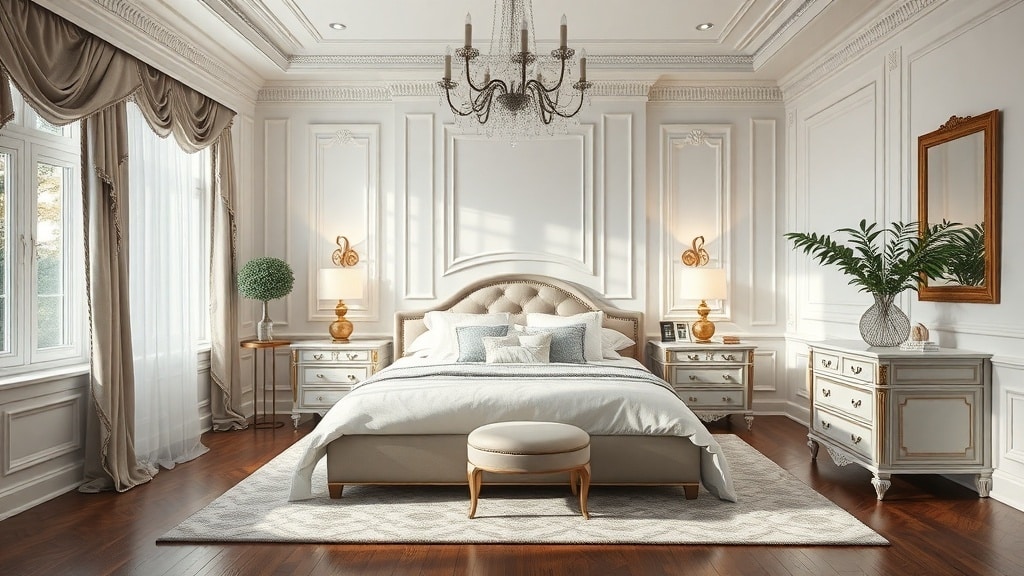 Every element in this design speaks to a timeless style, where comfort meets beauty. The subtle textures and soft fabrics create a serene environment, ideal for relaxation. This Victorian-inspired bedroom is a wonderful example of how classic design can be both functional and aesthetically pleasing.