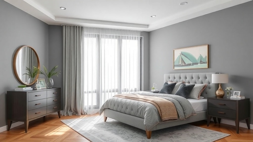 Gray bedrooms can be a perfect blend of style and comfort. This image showcases a sleek, minimalist design that highlights the beauty of gray accents. The bedding is a soft gray, creating a cozy atmosphere that invites relaxation.