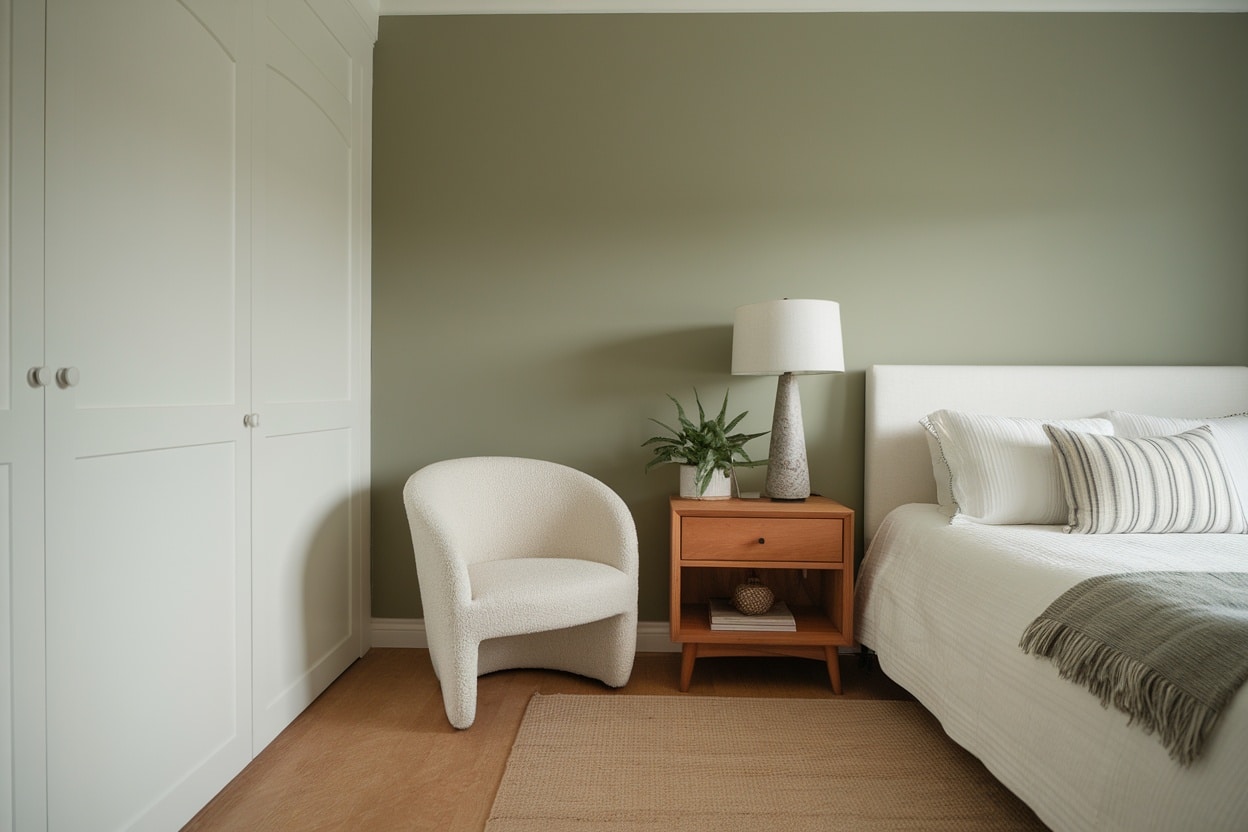For a more subtle approach, I keep walls and large furniture pieces in warm neutrals and bring sage in through smaller accents like pillows, throws, and decorative items. This creates a calming atmosphere that’s easy to update if my tastes change.