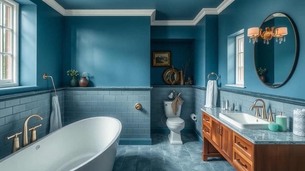 In a peacock blue bathroom, artistic wall decor can truly make a statement. The rich color creates a stunning backdrop for various art pieces. Imagine hanging vintage portraits or serene landscapes that pop against the blue walls. Each piece adds character and charm, making the space feel inviting.