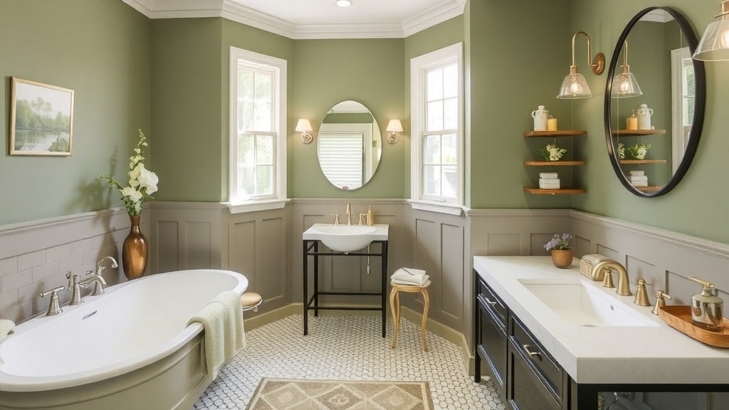 A sage green accent wall can bring a fresh and calming vibe to your bathroom. This soft, muted color creates a serene atmosphere, making it a perfect choice for a space dedicated to relaxation.