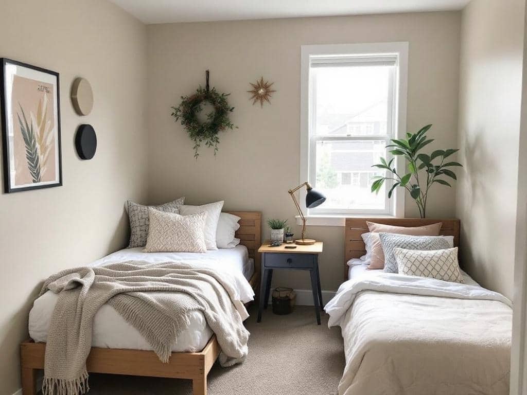 A textured taupe accent wall can completely change the vibe of your dorm room. This soft, neutral color creates a warm and inviting atmosphere, perfect for studying or relaxing. The wall in the image showcases a lovely taupe hue that adds depth without overwhelming the space.